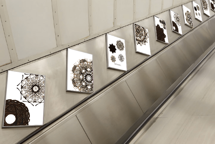 This project includes a series of printed posters showing the identity of Bexhill directly and simply by the patterns we created through exploring holes in stones found at the seaside. I made marks using the stones and we deconstructed them to make simple shapes then reconstructed the marks to create these patterns. Above is a digital series of posters to be displayed on screens in underground stations, the distortion of the patterns in the video reflects the weather of bexhill, as the movements we used are inspired by the behaviours of objects we observed at the Seaside